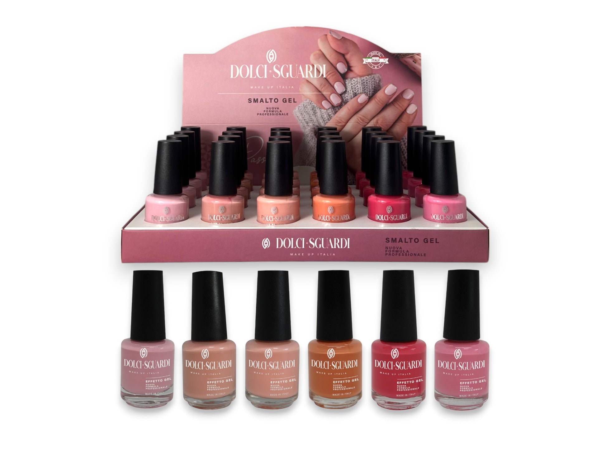 The "Dolci Sguardi - Soft Chic" collection is the perfect set for those who love natural and refined tones. This kit includes 24 gel-effect nail polishes in 15ml format, with shades ranging from powder pink to caramel, passing through delicate beige and sophisticated nudes. The gel-effect formula guarantees an ultra-bright finish and long-lasting wear, without the need for a UV lamp. A must-have for always elegant and well-groomed nails, with Made in Italy quality.