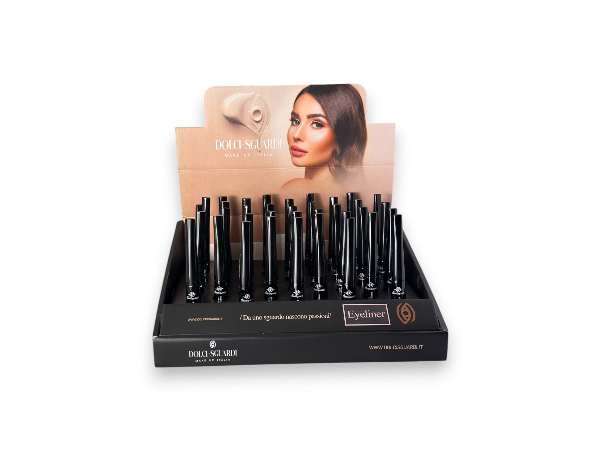 L'eyeliner Dolci sguardi - Made in Italy è un prodotto cosmetico utilizzato per tracciare linee lungo la linea delle ciglia, al fine di definire gli occhi e accentuare lo sguardo. Può essere applicato sia sulla palpebra superiore che inferiore, e viene utilizzato per creare vari effetti, da un look naturale a uno più drammatico.