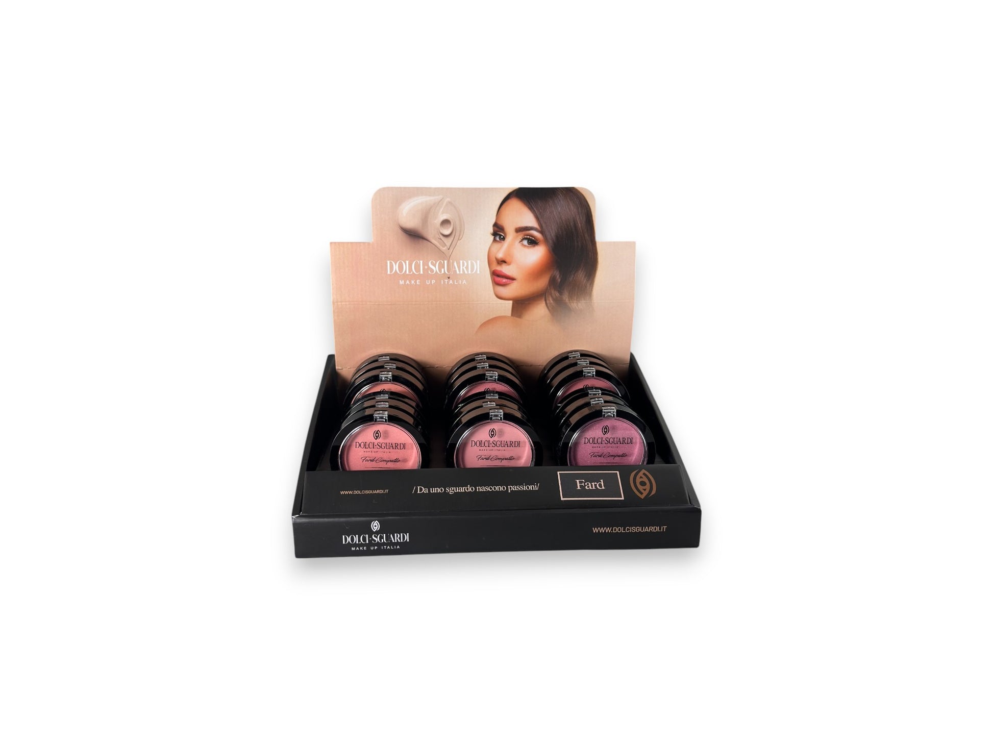 Il fard compatto Dolci sguardi - Made in Italy è un prodotto cosmetico in polvere solida utilizzato per dare colore e freschezza alle guance, creando un effetto naturale di salute e luminosità. Si presenta in una confezione compatta e viene applicato con un pennello o una spugnetta specifica.