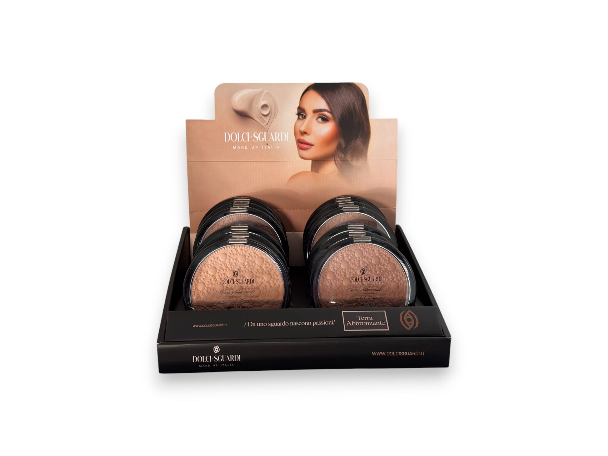 La terra abbronzante Dolci sguardi - Made in Italy è un prodotto cosmetico utilizzato per donare al viso un aspetto abbronzato e luminoso, come se si fosse stati esposti al sole. Solitamente, ha una texture leggera e una formula che può essere opaca o satinata, per creare un effetto sano e naturale.