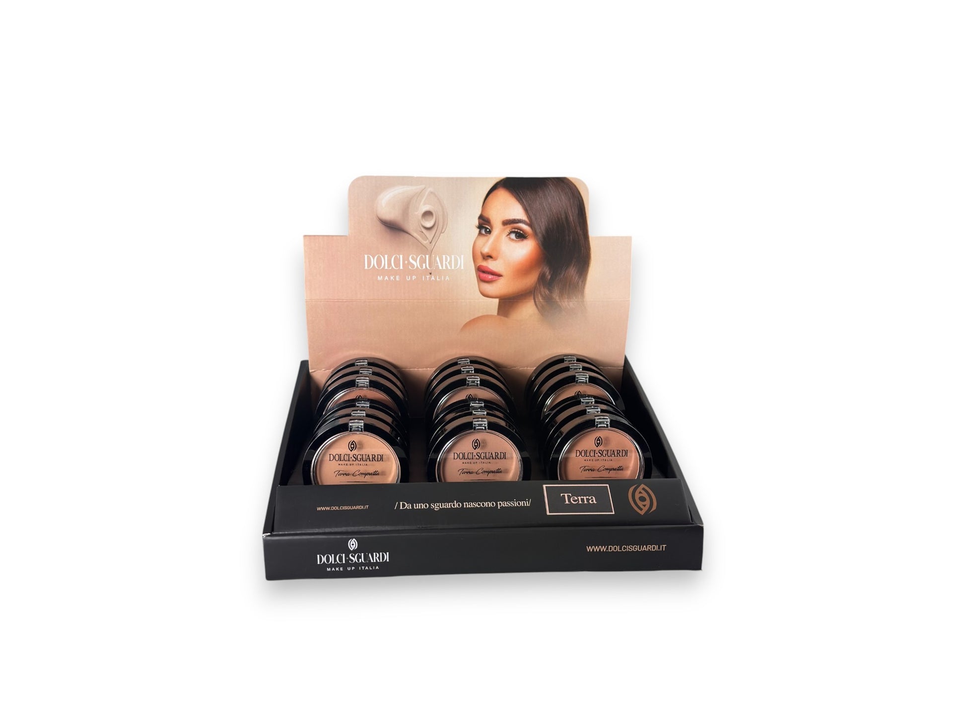 La terra compatta Dolci sguardi è un prodotto cosmetico utilizzato per scolpire e abbellire il viso, aggiungendo un effetto abbronzato o definendo i contorni. Si presenta in formato solido e compatto ed è ideale per creare un effetto "baciato dal sole" o per donare calore alla pelle.